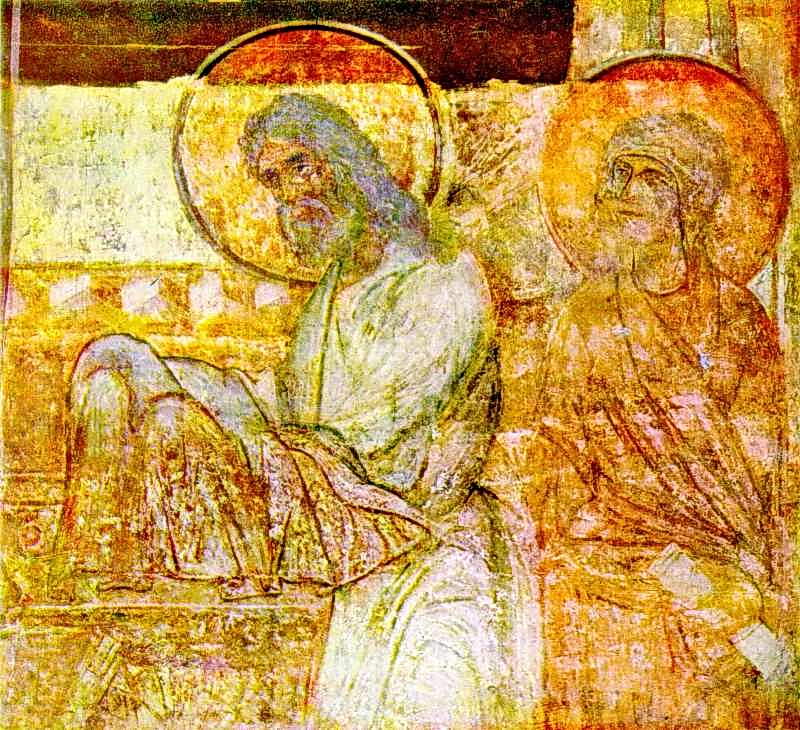 Стрітення. ФрагментРозмір зображення: 800:730 піксел Фрагмент фрескового розпису Кирилівської церкви в Києві. Середина XII ст. Джерело: Історія українського мистецтва. – К.: Наукова думка, 1966 р., т. 1, с. 317. |
