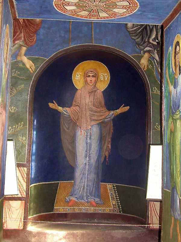 Каплиця Розмір зображення: 600:800 піксел Вкладені елементи 2004 р. Ангел (прохід, правий бік) (+) 2004 р. Ангел (прохід, лівий бік) (+) 2005 р. Явління трьох ангелів Аврааму. Розпис західної стіни князівської каплиці (+) 2005 р. Гостинність Авраама. Розпис північної стіни князівської каплиці (+) 2005 р. Розпис над північним вікном князівської каплиці (+) 2004 р. Лівий ангел (східна стіна) (+) 2004 р. Правий ангел (східна стіна) (+) 2006 р. Богородиця. Хори. Апсида князівської каплиці. (+) 2005 р. Розпис над південним вікном князівської каплиці (+)