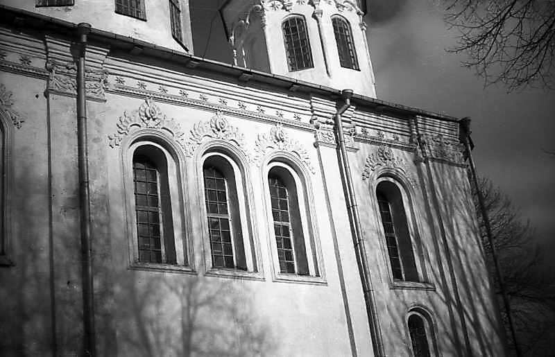1977 р. Фрагмент південного фасадуРозмір зображення: 800:515 піксел 1977 р. 2 березня. Фото М.І.Жарких. Негатека, № A233-05. |
