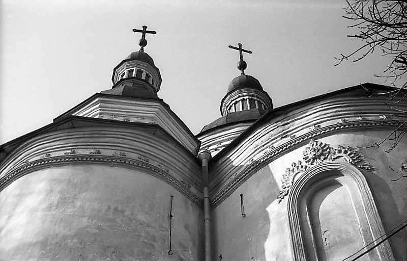 1977 р. Верхні частини апсид. Вигляд зі сходуРозмір зображення: 800:512 піксел 1977 р. 2 березня. Фото М.І.Жарких. Негатека, № A233-13. |