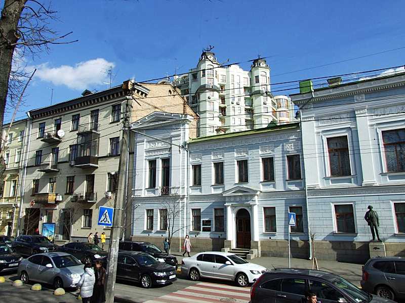 2020 р. Ліва частина головного фасаду Розмір зображення: 800:600 піксел Фото М. І. Жарких, 12 березня 2020 р. Вкладені елементи Фрагмент 2-го поверху
