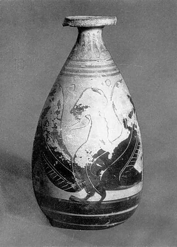 Алабастр із зображенням сирени. Розпис майстра «Гостробородої сирени». Корінф. VI ст. до н.е. Глина. Висота 17,5 см. Київський музей західного та східного мистецтва.
