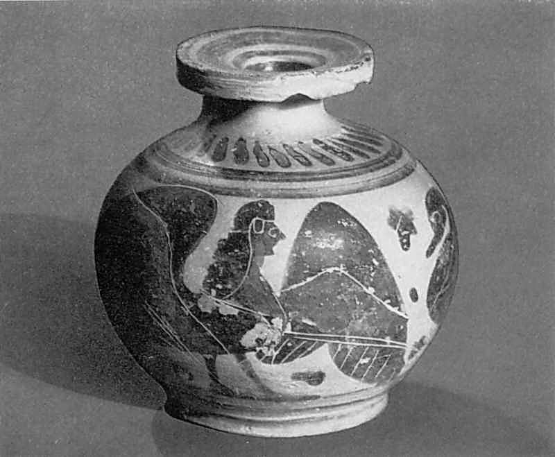 Арібалл плоскодонний з зображенням сирени та водяного птаха. Розпис майстра «Мюнхенської сирени». Корінф. VI ст. до н.е. Глина. Висота 9,5 см. Київський музей західного та східного мистецтва.