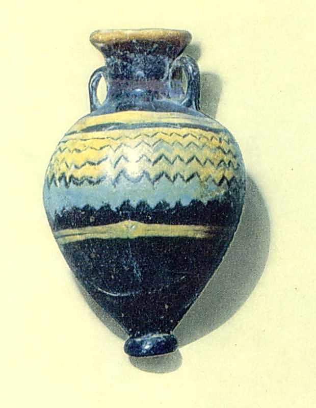 Амфоріск. V-IV ст. до н. е. Глухе кольорове скло. Висота 7,5 см. Київський музей західного та східного мистецтва.