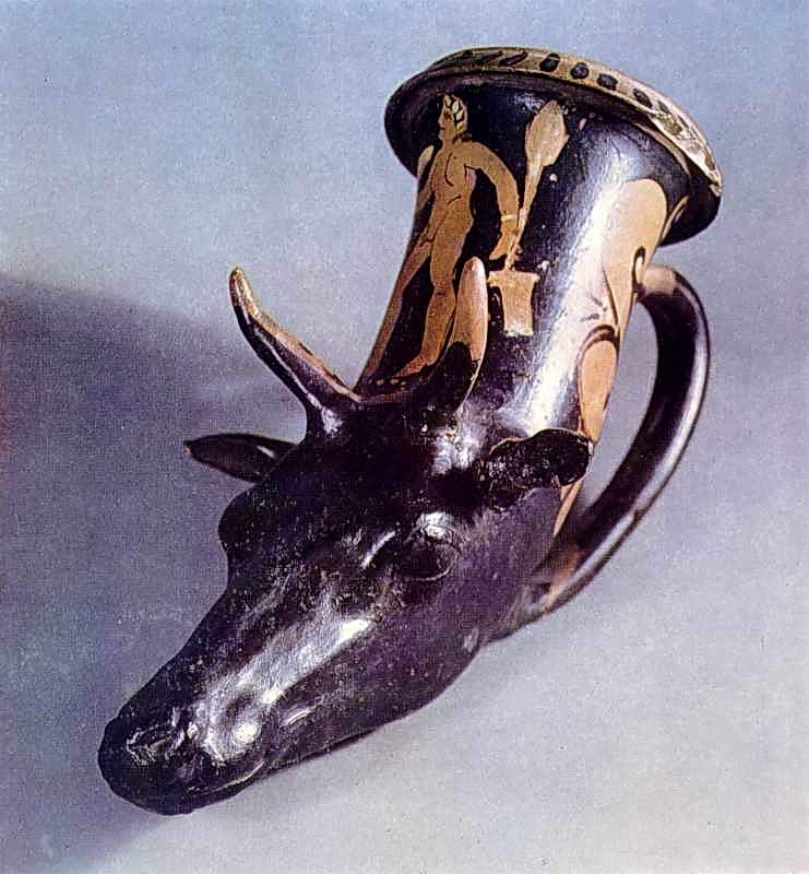 Ритон у вигляді голови лані. Південна Італія, Апулія. IV ст. до н.е. Глина. Висота 20,5 см. Київський музей західного та східного мистецтва.