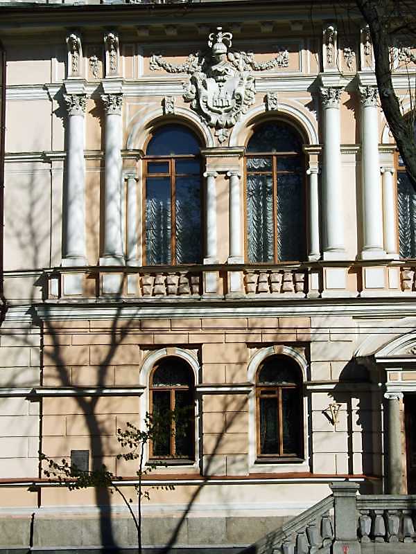 Фрагмент фасаду Розмір зображення: 600:800 піксел 21 квітня 2009 р. Фото М.І.Жарких. Вкладені елементи Вікна 2-го поверху (+) Вікна 1-го поверху Охоронна дошка пам’ятки