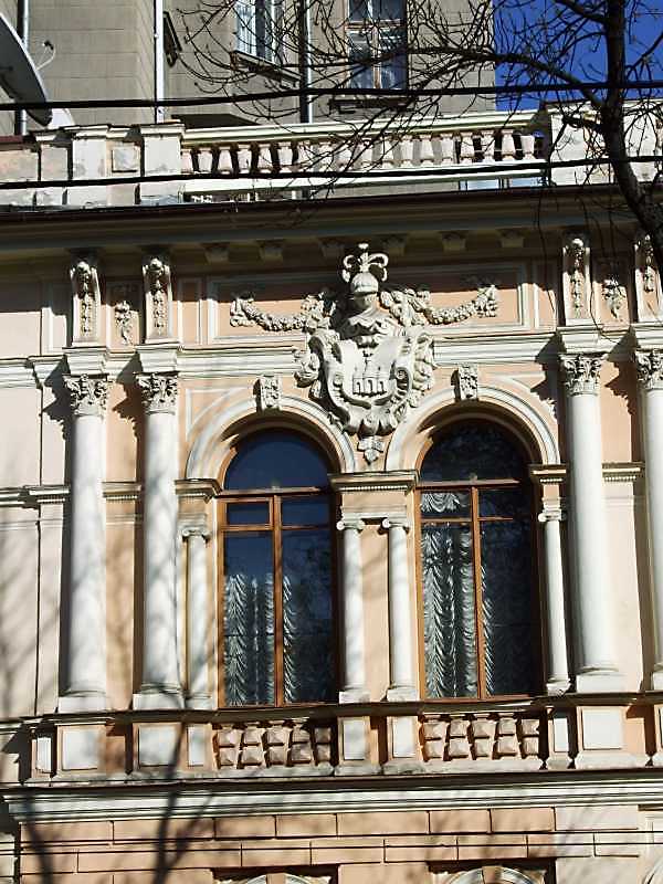 Вікна 2-го поверху Розмір зображення: 600:800 піксел 21 квітня 2009 р. Фото М.І.Жарких. Вкладені елементи Капітелі колон Верхня частина Картуш з гербом