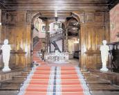 Інтер’єр вестибюля вирішений у стилі італійського Відродження, мотиви бароко простежуються в оформленні вишуканих парадних сходів з дерев’яним різьбленим поруччям вздовж ламаного прогону, у формах портика з крученими колонами і складною лінією арок.