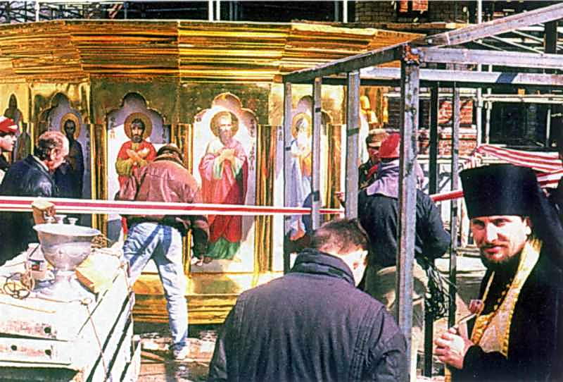 Підготовка до монтажу підбанника дзвіниціРозмір зображення: 800:542 піксел Джерело: Пам’ятки України, 1999 р., № 1, с. 7. |