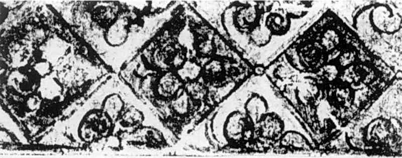 Фрагмент фрескового орнаменту. Репродукція з довоєнних фондів Софійського заповідника (нині архів проф. О. Повстенка). Опублікована 1947 р. на еміграції.