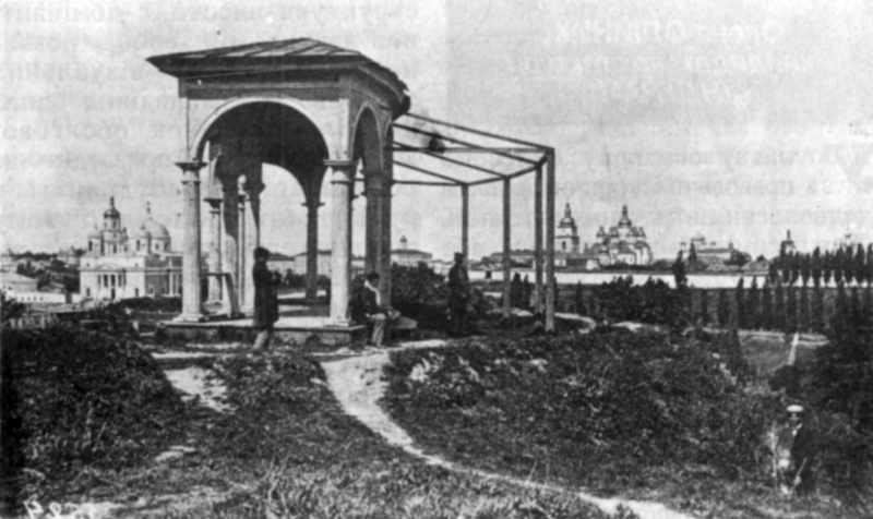 Поч. 20 ст. Панорама старого міста перед більшовицькими руйнуваннямиРозмір зображення: 800:476 піксел Ліворул – костел на тлі дзвіниці Софійського собору. Праворуч – Михайлівський Золотоверхий монастир. Джерело: Пам’ятки України, 1994 р., № 3-6. |