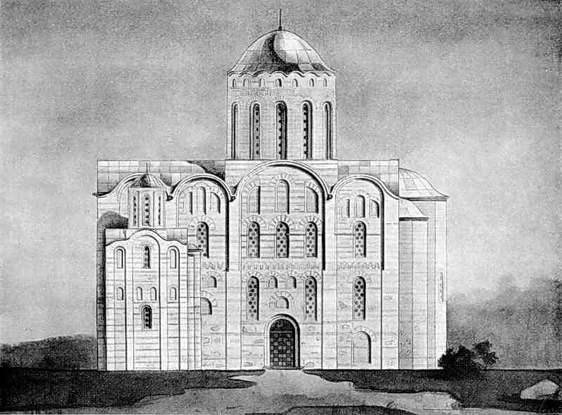 Собор Михайлівського Золотоверхого монастиря в Києві. 1108 р. Реконструкція Ю. С. Асеєва за дослідженнями І. В. Моргилевського.