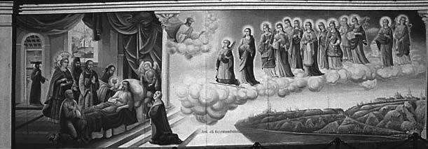 [2003 р.] Розпис відкосу монастирського муруРозмір зображення: 611:213 піксел Джерело: Звід пам’яток історії і культури України. – К.: 2003 р., т. 2 (Київ), № 267-02-1. |