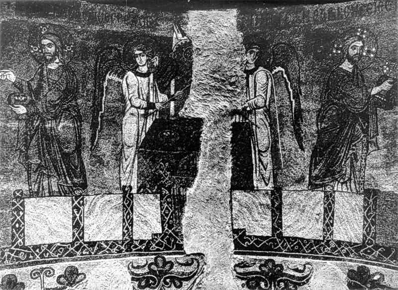 Христос з ангелами. Центральна частина мозаїчної композиції «Євхаристія» з Михайлівського Золотоверхого собору в Києві. Початок XII ст.