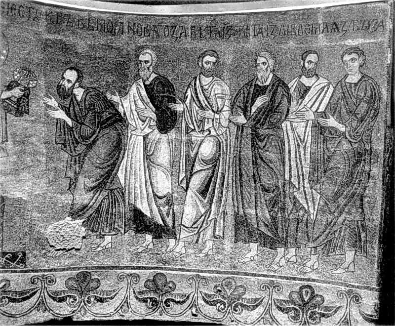 Апостоли. Права частина мозаїчної композиції «Євхаристія» з Михайлівського Золотоверхого собору в Києві. XII ст.