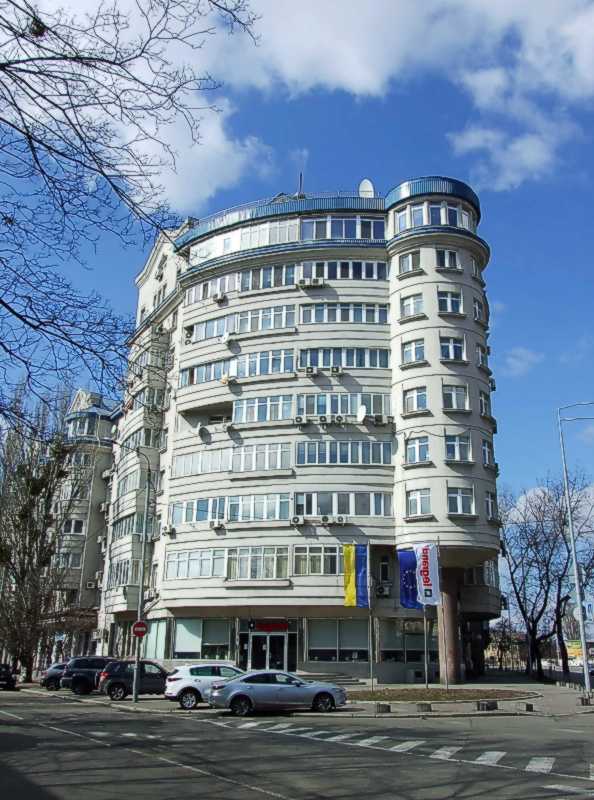 Житловий будинок (№ 31)Розмір зображення: 594:800 піксел Вигляд з південного сходу. Ліворуч – вул. Турівська, праворуч – віл. Набережно-Лугова. Фото М. І. Жарких, 24 березня 2021 р. |