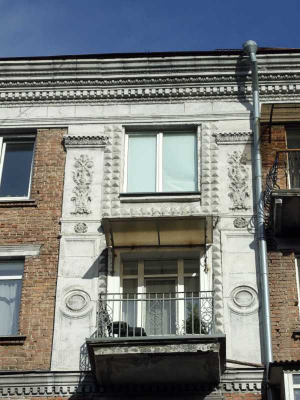 Вікна 4-5-го поверхів Розмір зображення: 600:800 піксел Фото М. І. Жарких, 3 квітня 2021 р. Вкладені елементи Рельєф на фасаді