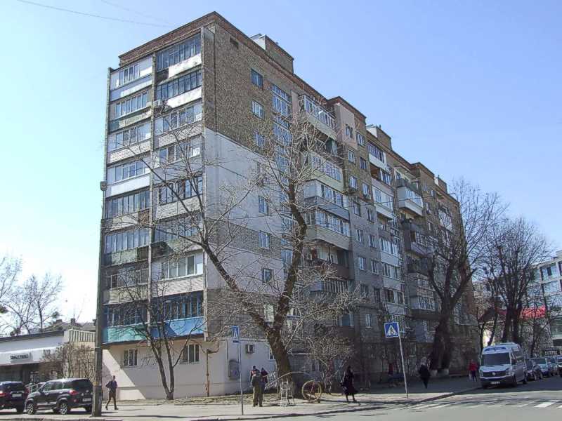 Житловий будинок (№ 4)Розмір зображення: 800:600 піксел Вигляд з північного сходу. Ліворуч – вул. Юрківська, праворуч – вул. Турівська. Фото М. І. Жарких, 26 березня 2021 р. |