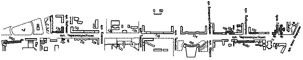 План кінця вулиціРозмір зображення: 1033:206 піксел Джерело: Звід пам’яток історії і культури України. – К.: 2011 р., т. 3 (Київ), № 561-1. |
