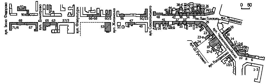 План початку вулиціРозмір зображення: 1013:319 піксел Джерело: Звід пам’яток історії і культури України. – К.: 2011 р., т. 3 (Київ), № 561-2. |