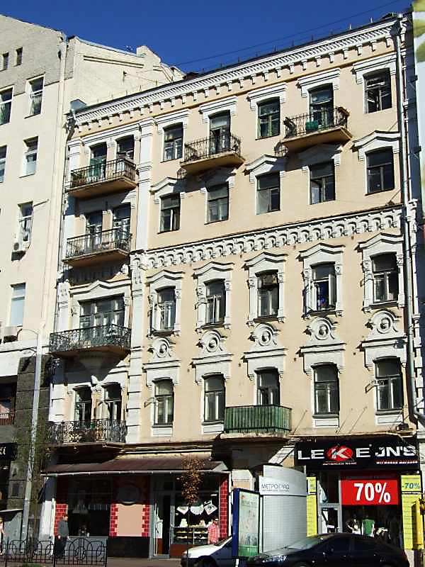 Житловий будинок (№ 12а) Розмір зображення: 600:800 піксел № 12а дано умовно – на плані він номеру не має. Вкладені елементи 2011 р. Звід пам’яток Києва (+) 2007 р. Головний фасад (+)