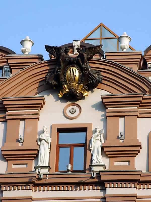 2007 р. Верхня частина центрального прясла фасаду по вул.В.ВасильківськійРозмір зображення: 600:800 піксел 19 липня 2007 р. Фото М.І.Жарких. |