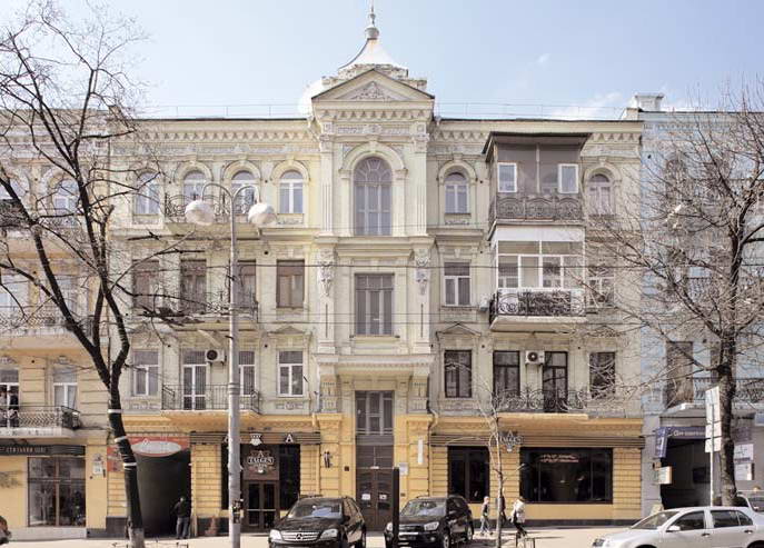 Головний фасад (№ 32)Розмір зображення: 687:493 піксел Джерело: Звід пам’яток історії і культури України. – К.: 2011 р., т. 3 (Київ), № 561-104. |