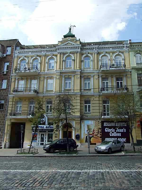 2007 р. Головний фасад Розмір зображення: 600:800 піксел 26 серпня 2007 р. Фото М.І.Жарких. Вкладені елементи Центральна частина 4-го поверху Вікна 4-го поверху Вікна 3-го поверху