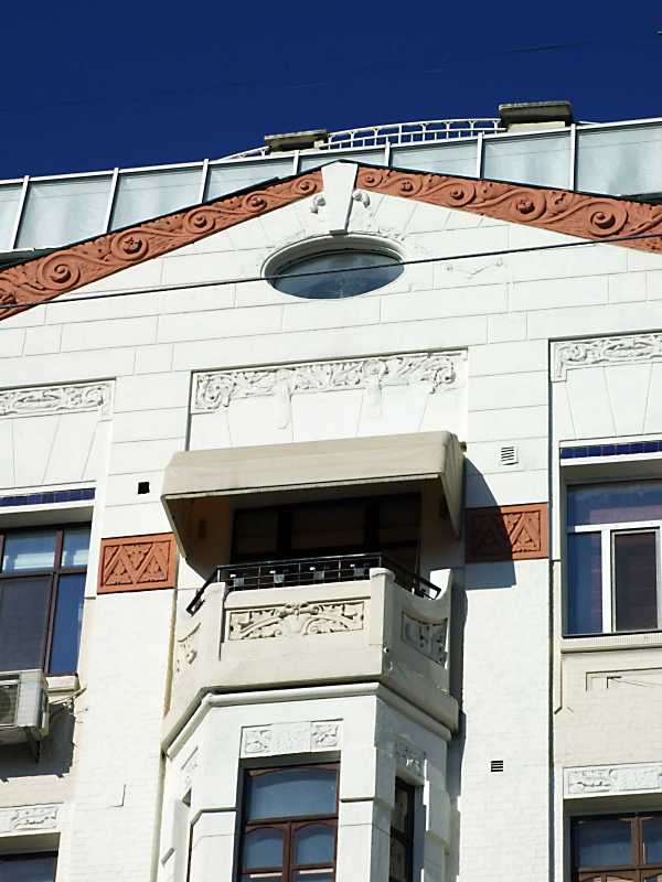 Верхня частина головного фасаду Розмір зображення: 600:800 піксел 2 квітня 2012 р. Фото М.І.Жарких. Вкладені елементи Балкон 6-го поверху