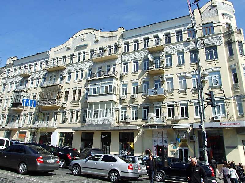 2009 р. Фасад по вул. Вел.Васильківській Розмір зображення: 800:600 піксел 22 квітня 2009 р. Фото М.І.Жарких. Вкладені елементи Наріжний еркер
