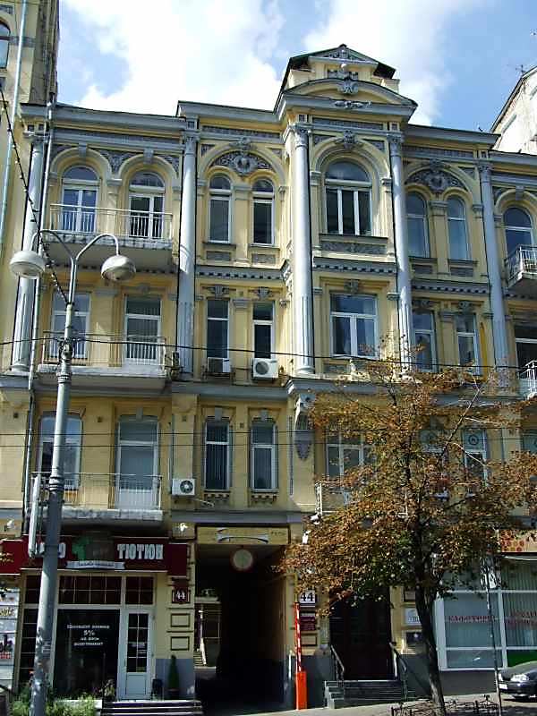2007 р. Головний фасад Розмір зображення: 600:800 піксел 26 серпня 2007 р. Фото М.І.Жарких. Вкладені елементи Центральна частина 4-го поверху Вікна 4-го поверху Вікна 4-го поверху