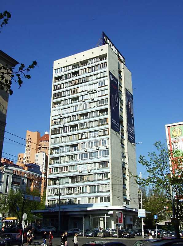 2009 р. Загальний вигляд з південного заходуРозмір зображення: 596:800 піксел Ліворуч – вул. Вел.Васильківська, праворуч – вул. Жилянська. 21 квітня 2009 р. Фото М.І.Жарких. |