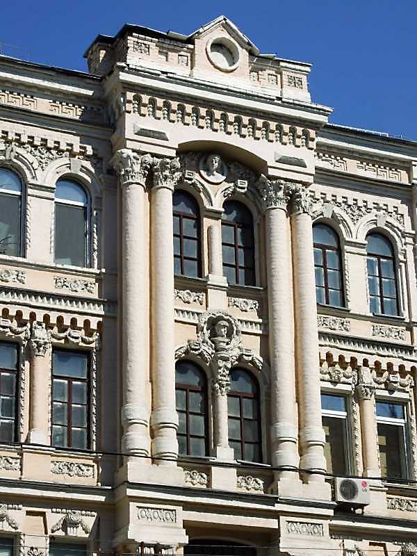 Фрагмент 3-4-го поверхів Розмір зображення: 600:800 піксел 22 квітня 2009 р. Фото М.І.Жарких. Вкладені елементи Тимпан 4-го поверху (+) Тимпан 3-го поверху (+)