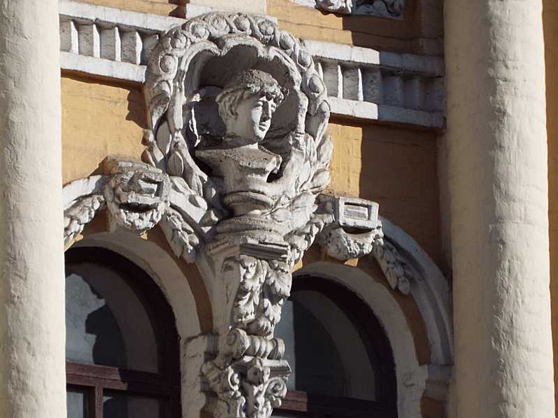 Бюст у рельєфній ніші 3-го поверху Розмір зображення: 800:600 піксел Фото Івана Парнікози, 22 жовтня 2017 р. Попередня сторінка | Вище | Наступна сторінка