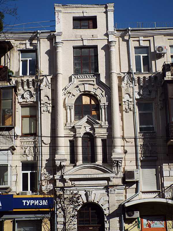 Ліва сходова клітка Розмір зображення: 600:800 піксел Фото Івана Парнікози, 22 жовтня 2017 р. Вкладені елементи Фрагмент фасаду 3-го поверху