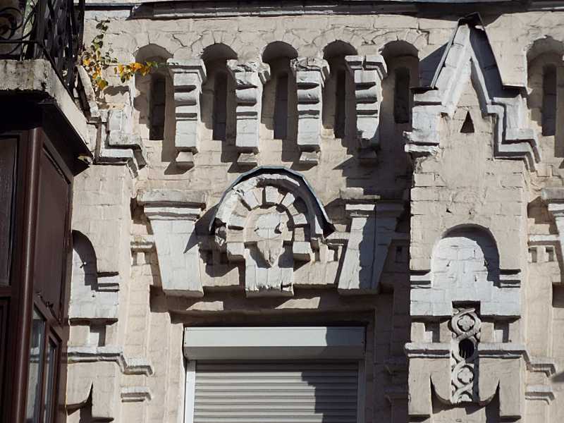 Фрагмент фасаду 3-го поверху Розмір зображення: 800:600 піксел Фото Івана Парнікози, 22 жовтня 2017 р. Вище | Наступна сторінка