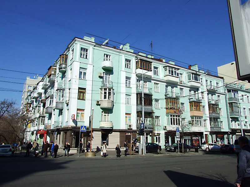 2012 р. Загальний виглядРозмір зображення: 800:600 піксел Ліворуч – вул. Димитрова, праворуч – вул. Велика Васильківська. 2 квітня 2012 р. Фото М.І.Жарких. |