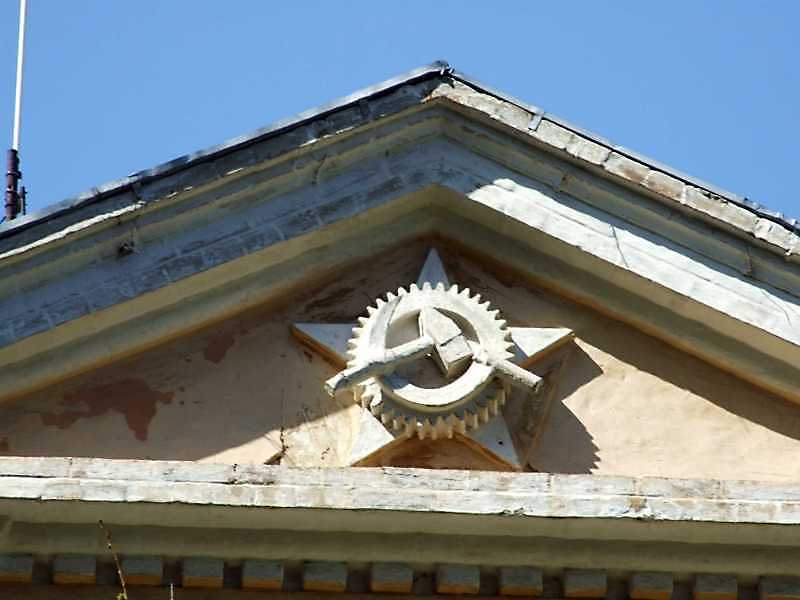 Фронтон з гербом Розмір зображення: 800:600 піксел 22 квітня 2009 р. Фото М.І.Жарких. Вище | Наступна сторінка