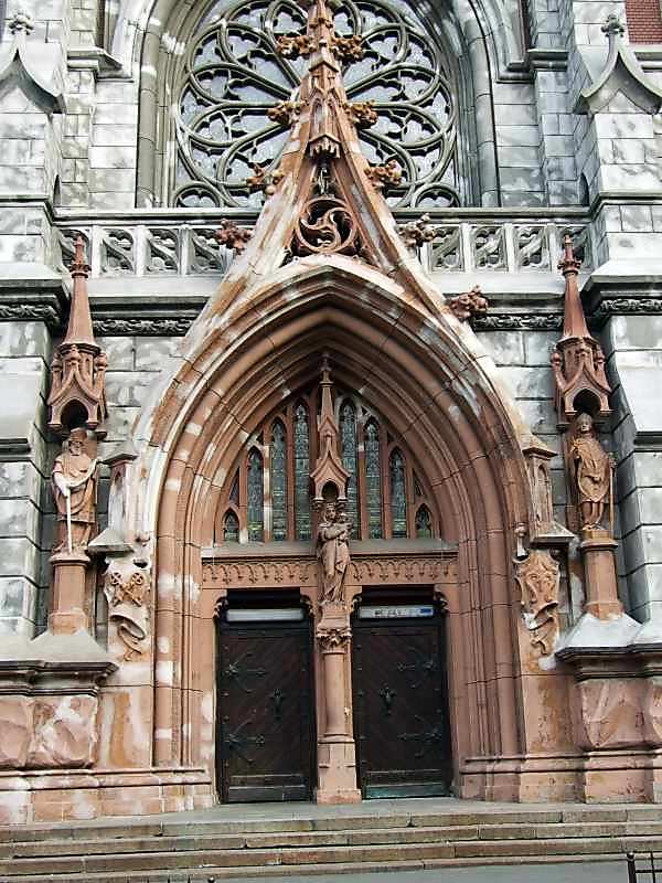 Головний портал Розмір зображення: 600:800 піксел 3 листопада 2007 р. Фото М.І.Жарких. Вкладені елементи Ліва скульптура (+) Богородиця з немовлям (+) Права скульптура (+)
