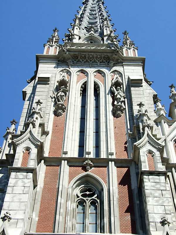 2009 р. Фрагмент фасаду лівої башти Розмір зображення: 600:800 піксел 22 квітня 2009 р. Фото М.І.Жарких. Вкладені елементи Апостол ? (+) Апостол Андрій (+) Вікно (+)