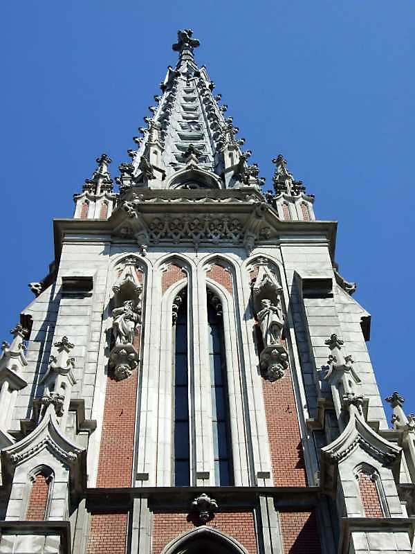 2009 р. Фрагмент фасаду правої башти Розмір зображення: 600:800 піксел 22 квітня 2009 р. Фото М.І.Жарких. Вкладені елементи Апостол Петро (+) Апостол Павло (+)