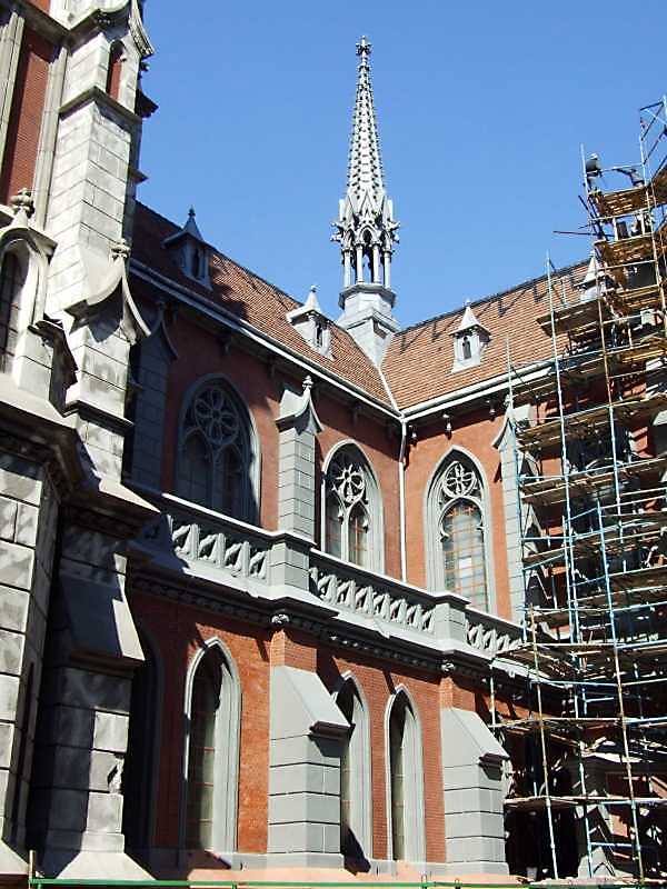 2009 р. Фрагмент бічного фасаду Розмір зображення: 600:800 піксел 22 квітня 2009 р. Фото М.І.Жарких. Вкладені елементи Сингатура (+) Вікно головної нави