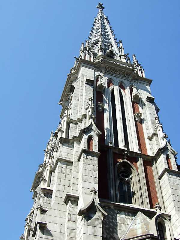 2009 р. Бічний фасад правої башти Розмір зображення: 600:800 піксел 22 квітня 2009 р. Фото М.І.Жарких. Вкладені елементи Шпиль в ракурсі Місце для скульптури (ліве) Місце для скульптури (праве)