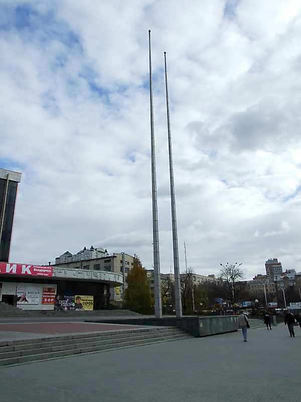 2007 р. Дві щогли (для прапорів СРСР та УРСР, тому не три і не одна)Розмір зображення: 600:800 піксел 3 листопада 2007 р. Фото М.І.Жарких. |