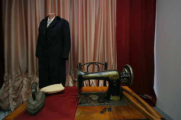 2009 р. Фрагмент експозиції – костюм, праска, швейна машинаРозмір зображення: 600:400 піксел Фото Тараса Бондаренка