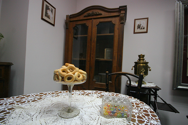2009 р. Фрагмент експозиції – стіл у їдальні, самовар Розмір зображення: 600:400 піксел Фото Тараса Бондаренка Попередня сторінка | Вище | Наступна сторінка