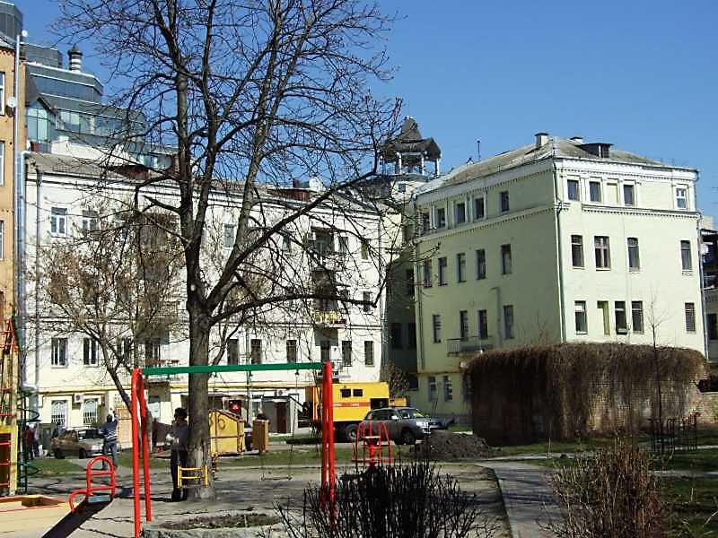 2009 р. Загальний вигляд з боку вул.О.Гончара (справа – № 19)Розмір зображення: 800:600 піксел 8 квітня 2009 р. Фото М.І.Жарких. |