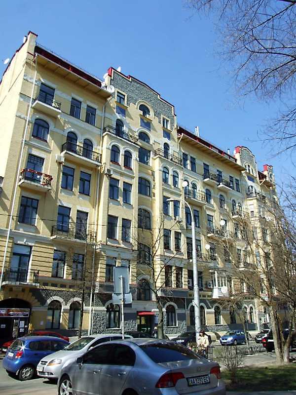 2009 р. Фасад по вул. О.Гончара Розмір зображення: 600:800 піксел 8 квітня 2009 р. Фото М.І.Жарких. Вкладені елементи Фрагмент 5-7-го поверхів
