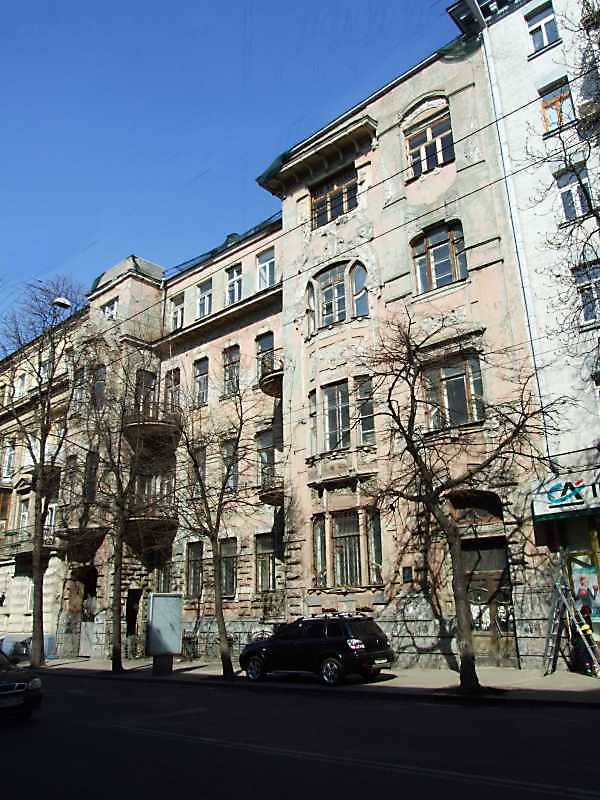 2009 р. Загальний вигляд Розмір зображення: 600:800 піксел 9 квітня 2009 р. Фото М.І.Жарких. Вкладені елементи Фрагмент 3-4-го поверхів (+) Підвіконня 2-го поверху Охоронна дошка Вікно 4-го поверху Правий вхід Рельєфна вставка 2-го поверху