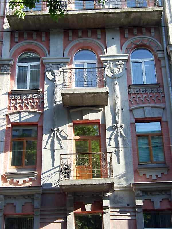 Фрагмент фасаду 3-4-го поверхів Розмір зображення: 600:800 піксел 2008 р. 25 червня. Фото М.І.Жарких. Вище | Наступна сторінка